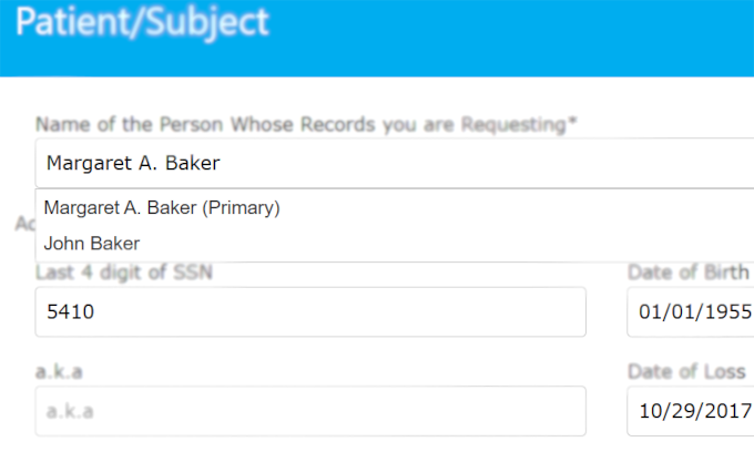 Record retrieval often faces unexpected delays because of incorrect information provided; it’s easy to make a typo in a name or date of birth. When you use our Neos integration, the cases’ parties will be presented in a simple, drop-down menu on our portal. In the case of multiple parties, we detect the ones you most likely need records for and ignore the others.