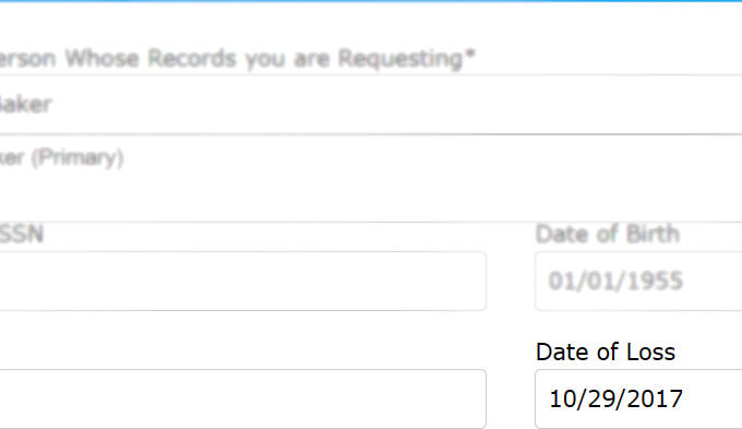 Often knowing the exact date of loss or date of the incident is helpful when locating records. Just use Neos’ DOI section and it will be automatically carried over to your record request.